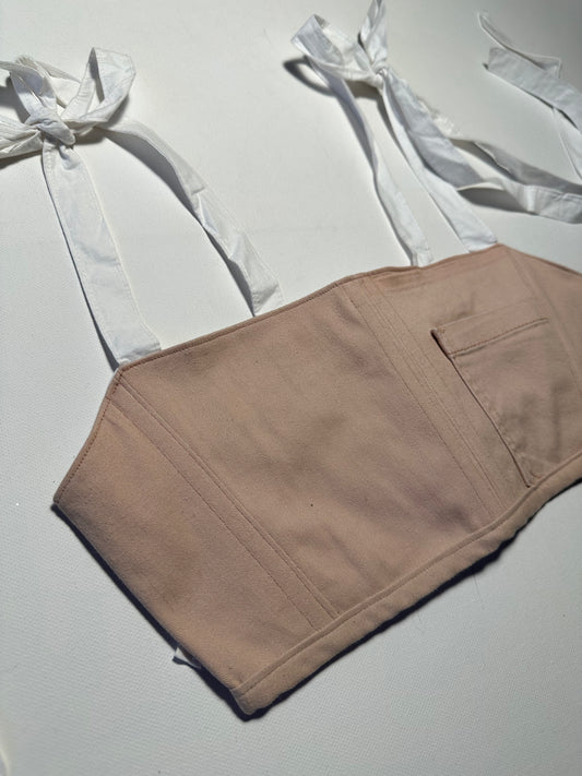 Streublumen Baumwoll-Korsett mit Spitze – beige Details & Messingösen | Handmade #712