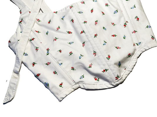 Wendbares Korsett aus weißer Baumwolle mit Blümchenmuster #771