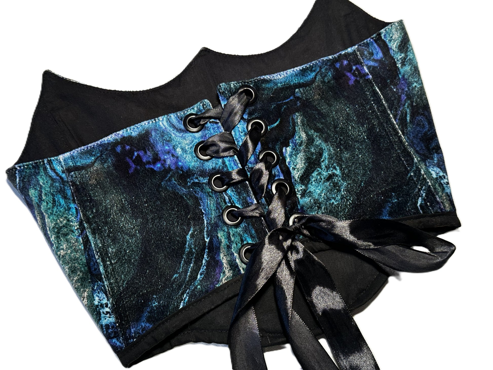 Wendbares Samt Korsett in marmorierten Blautönen #769